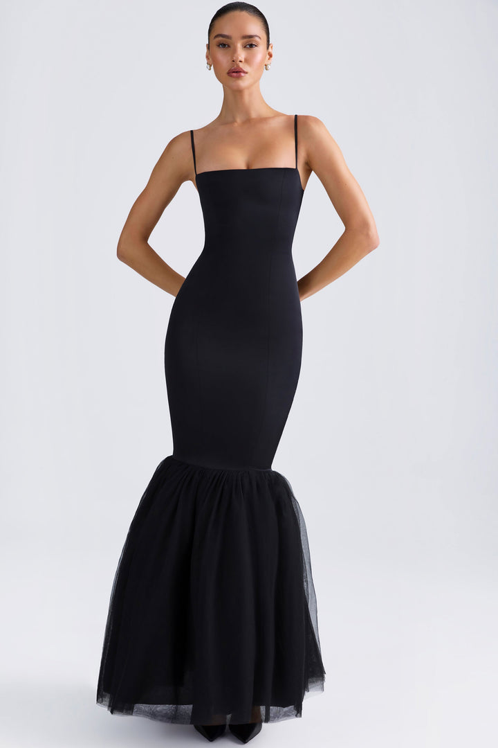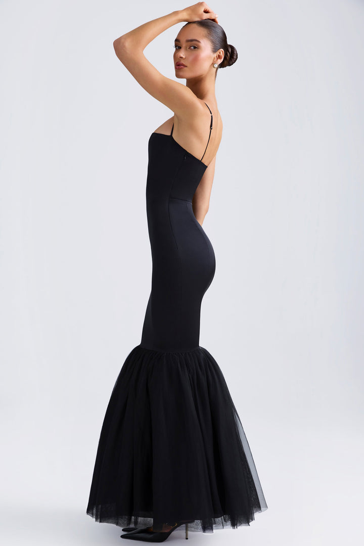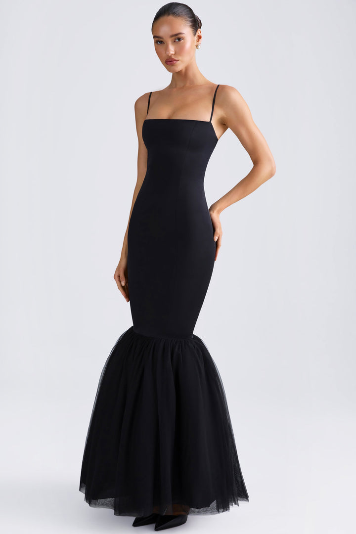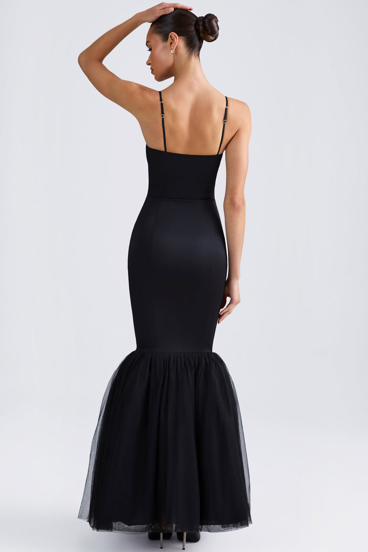 Siyah Tül Etekli Balık Kuyruğu Elbisesi