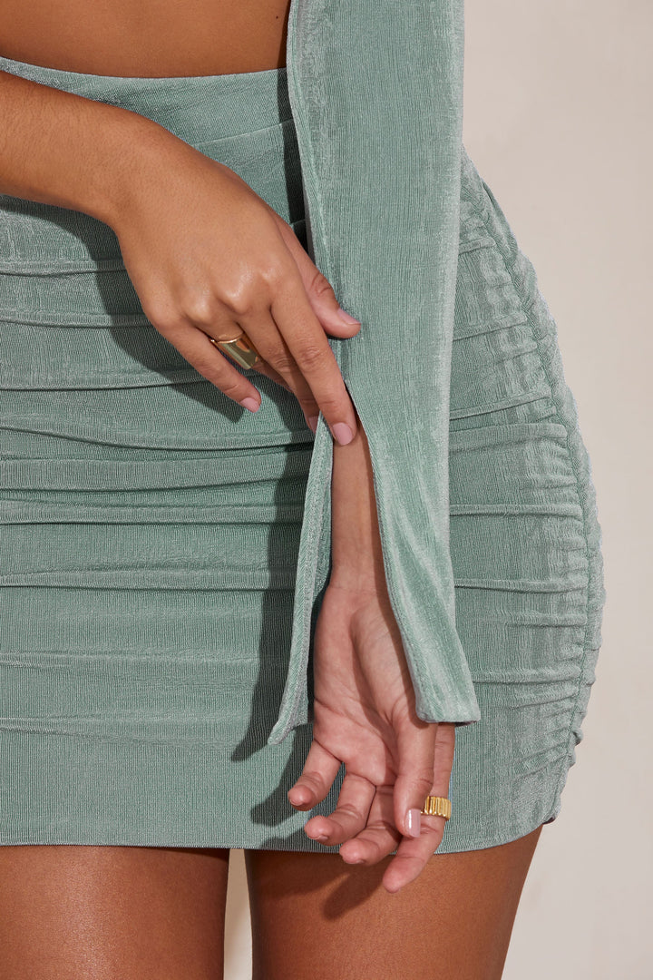 Tek Omuzlu Geniş Kol Mavi Mini Elbise