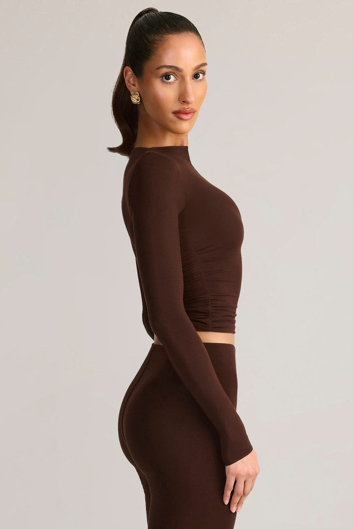 Modal Ruched Long-Sleeve Top in Chocolate Brown