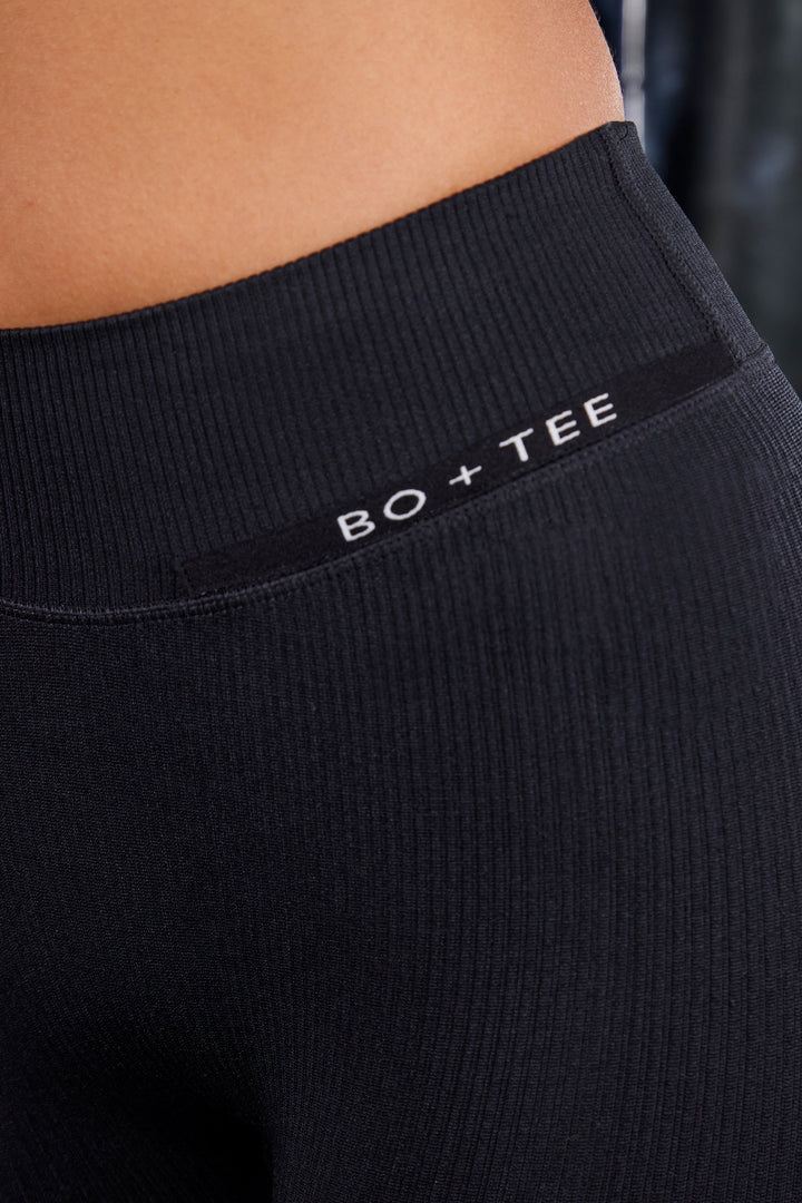 Siyah Yüksek Bel Yırtmaçlı Fitilli Tayt