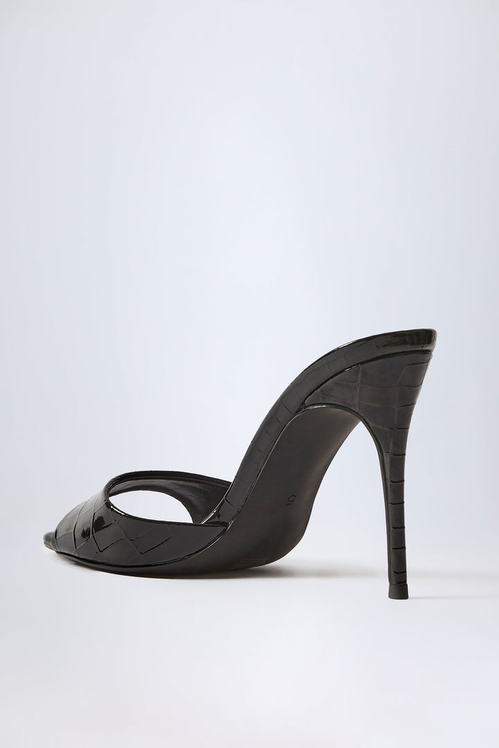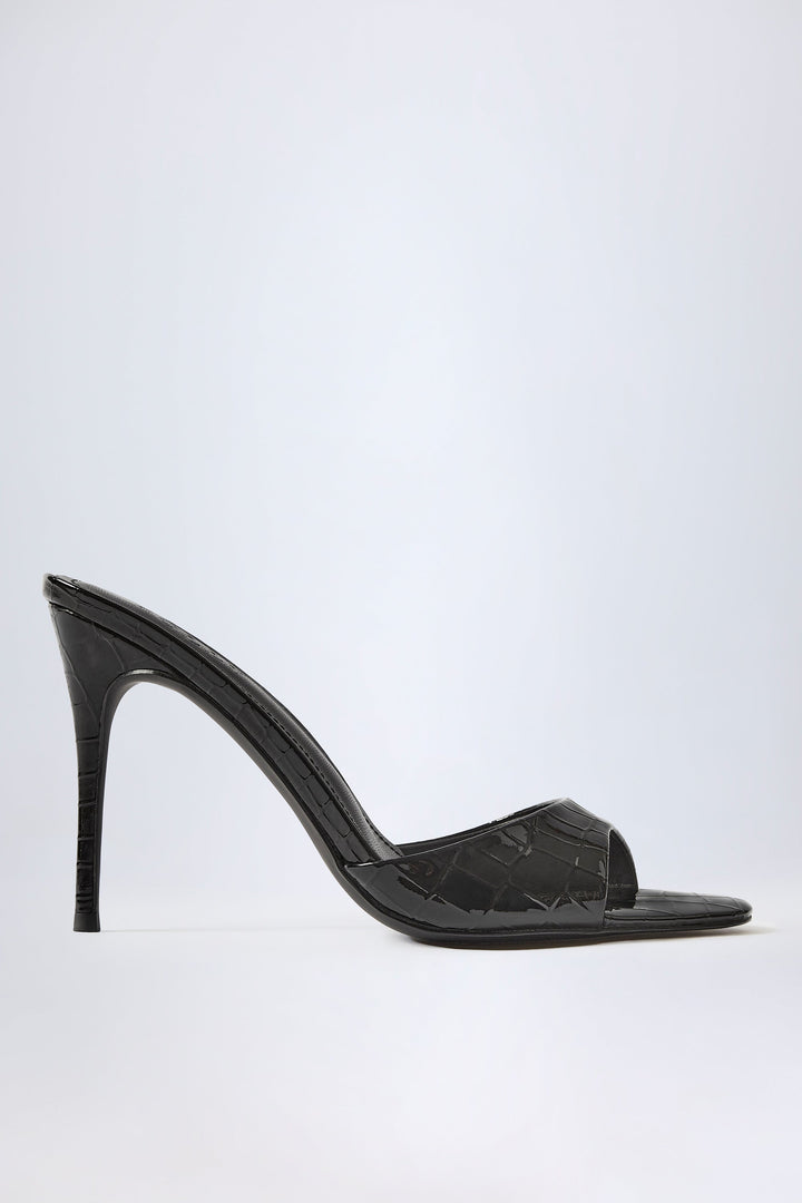 Croc Patent Siyah Badem Parmaklı Topuklu Ayakkabı