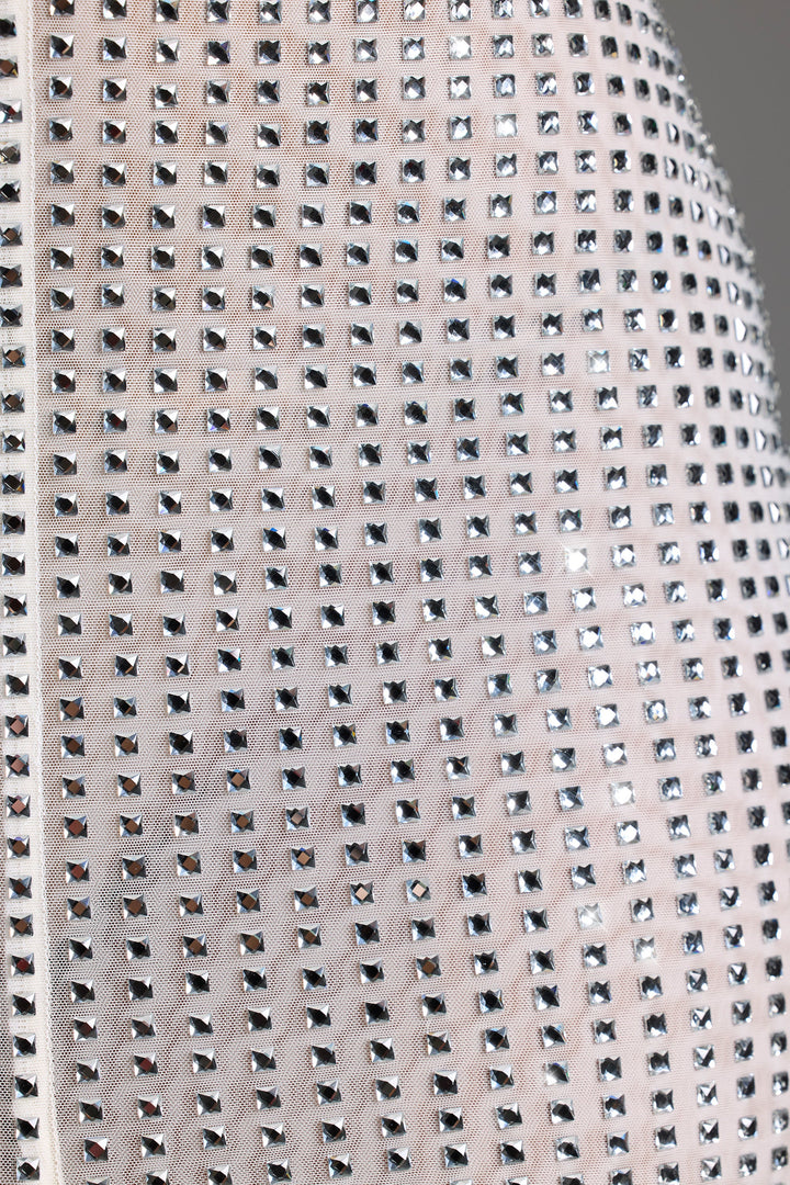 Beyaz Taşlı Kesik Boyundan Bağlamalı Uzun Elbise