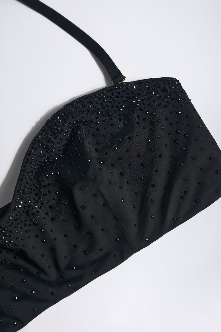 Siyah İşlemeli Bandeau Bikini Üstü