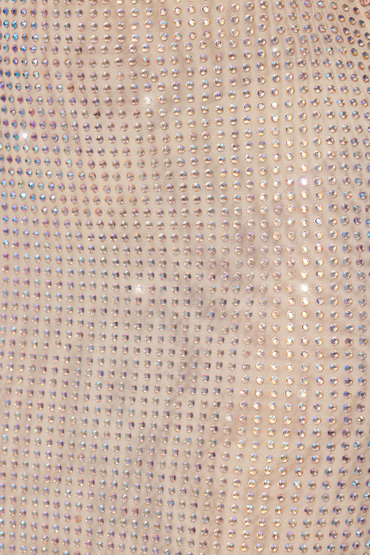 Şampanya Rengi Taşlı Drapeli Fırfırlı Maxi Elbise