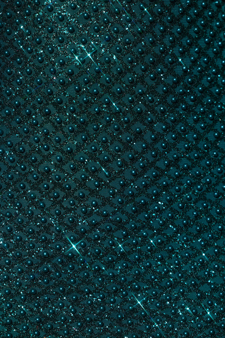 Teal Yeşili İşlemeli Dekolteli Mini Elbise