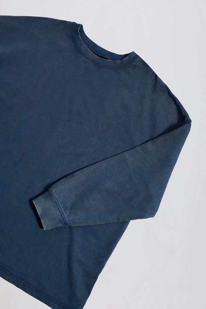 Asit Yıkamalı Mavi Uzun Kollu Oversize Tişört