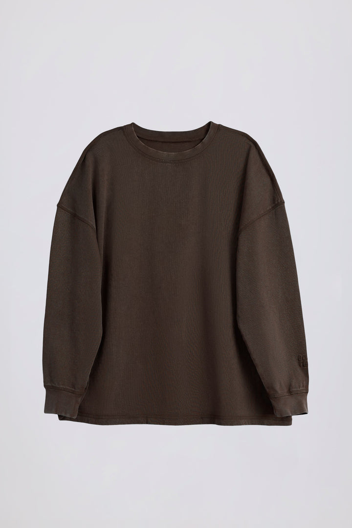 Asit Yıkamalı Kahverengi Uzun Kollu Oversize Tişört