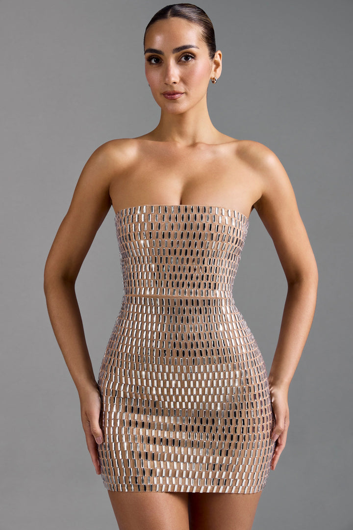Badem Taşlı Bandeau Mini Elbise