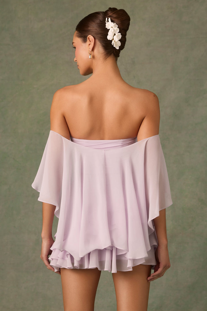 Lila Düşük Omuz Fırfırlı Mini Elbise