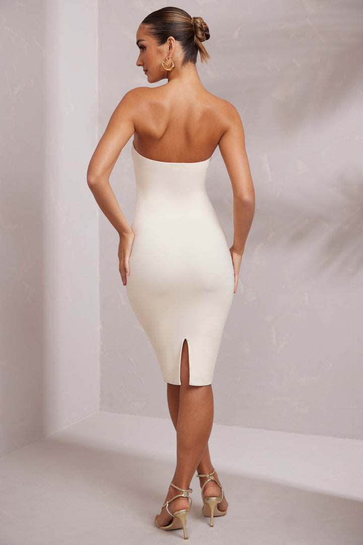 Fildişi Bandeau Midi Elbise