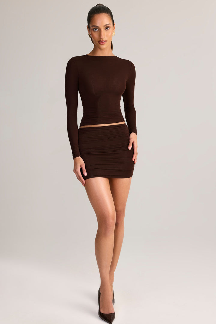 Modal Ruched Mid-Rise Mini Skirt in Chocolate Brown