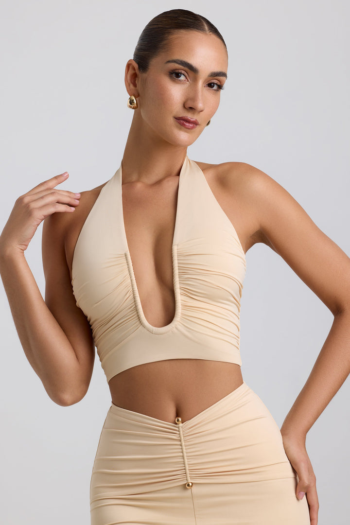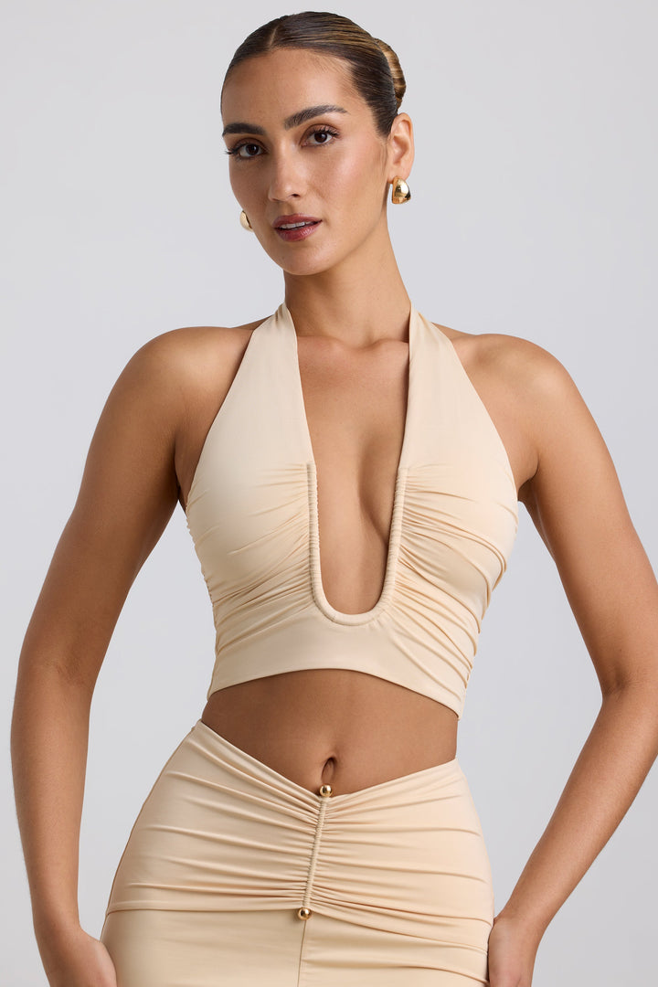 Buttercream Slinky Jersey Dantelli Boyundan Bağlı Üst