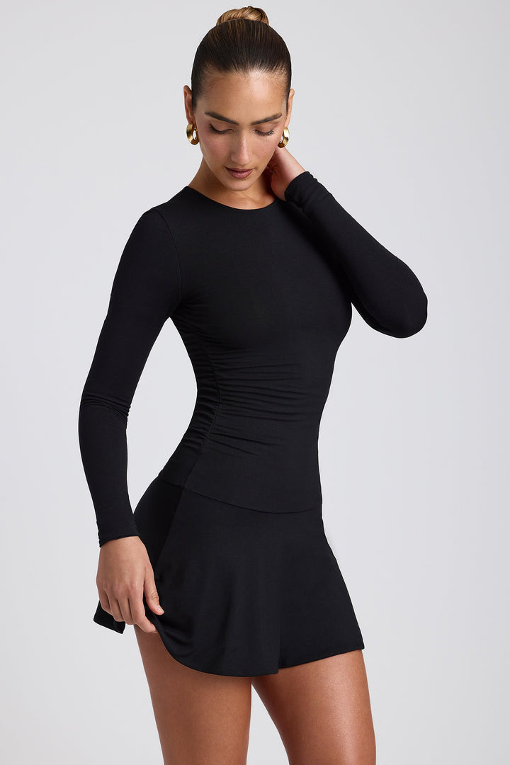 Siyah Modal Dantelli Bisiklet Yaka Mini Elbise