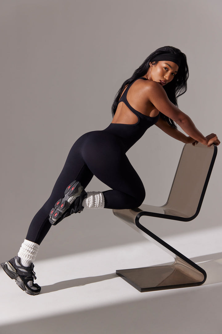 Minyon Tam Boy Arkası Kesikli Siyah Unitard