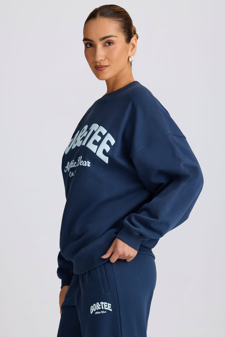 Koyu Lacivert Oversize Bisiklet Yaka Kazak