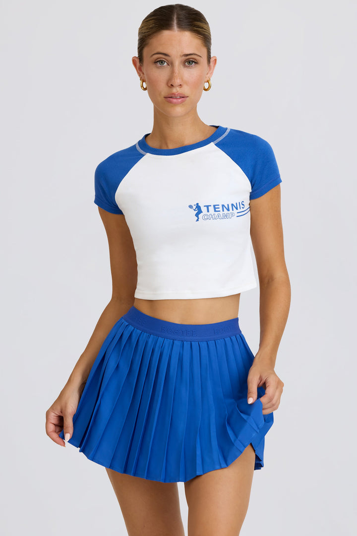 Beyaz Grafik Desenli Kırpılmış Tişört