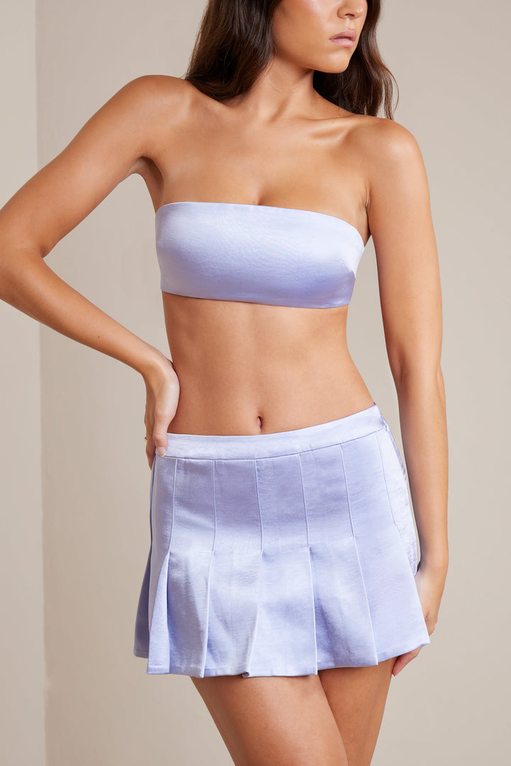 Cezayir Menekşesi Saten Düşük Belli Pilili Mini Etek