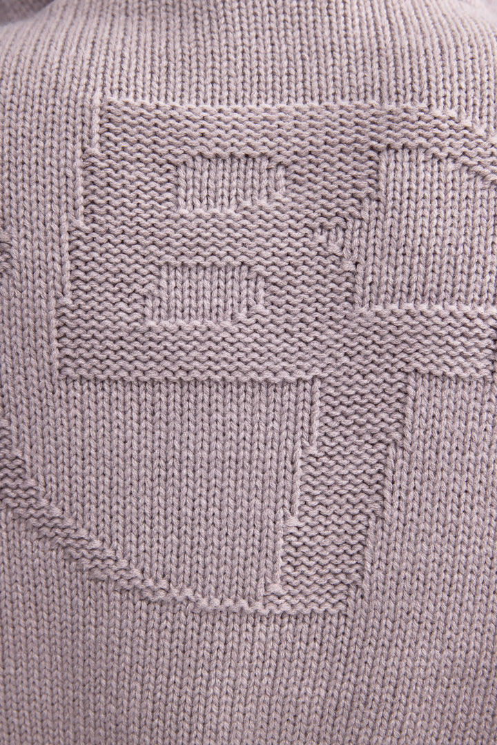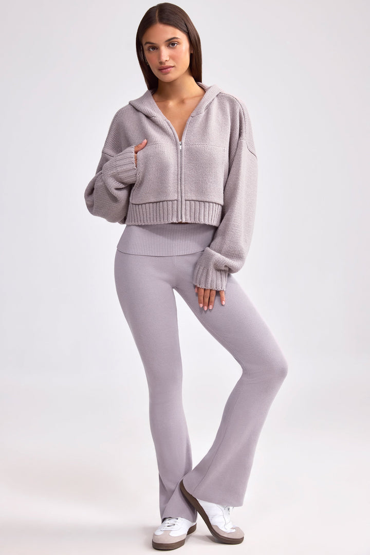 Tozlu Lavanta Kısa Fermuarlı Kalın Örgü Kapüşonlu Üst