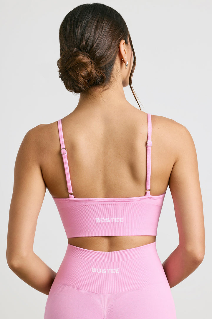 Sakız Pembesi V Yaka Define Lüks Spor Sütyeni