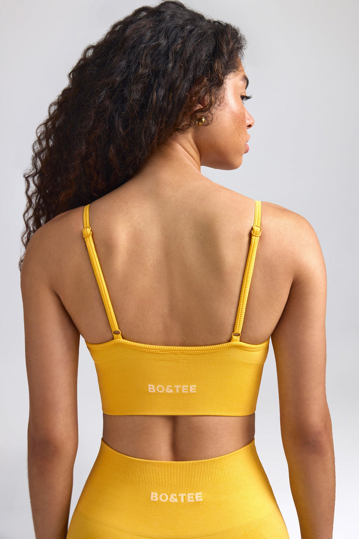 Tanımla Altın Sarısı Lüks V Yaka Spor Sütyeni