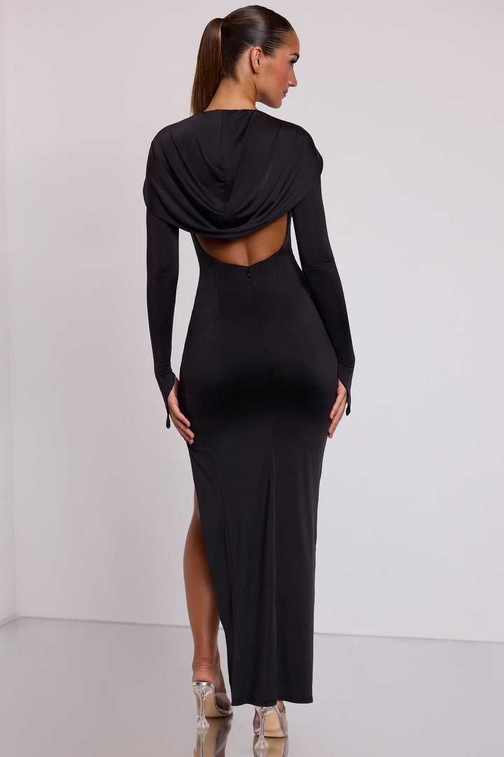 Siyah Kapüşonlu Uzun Kollu Maxi Elbise
