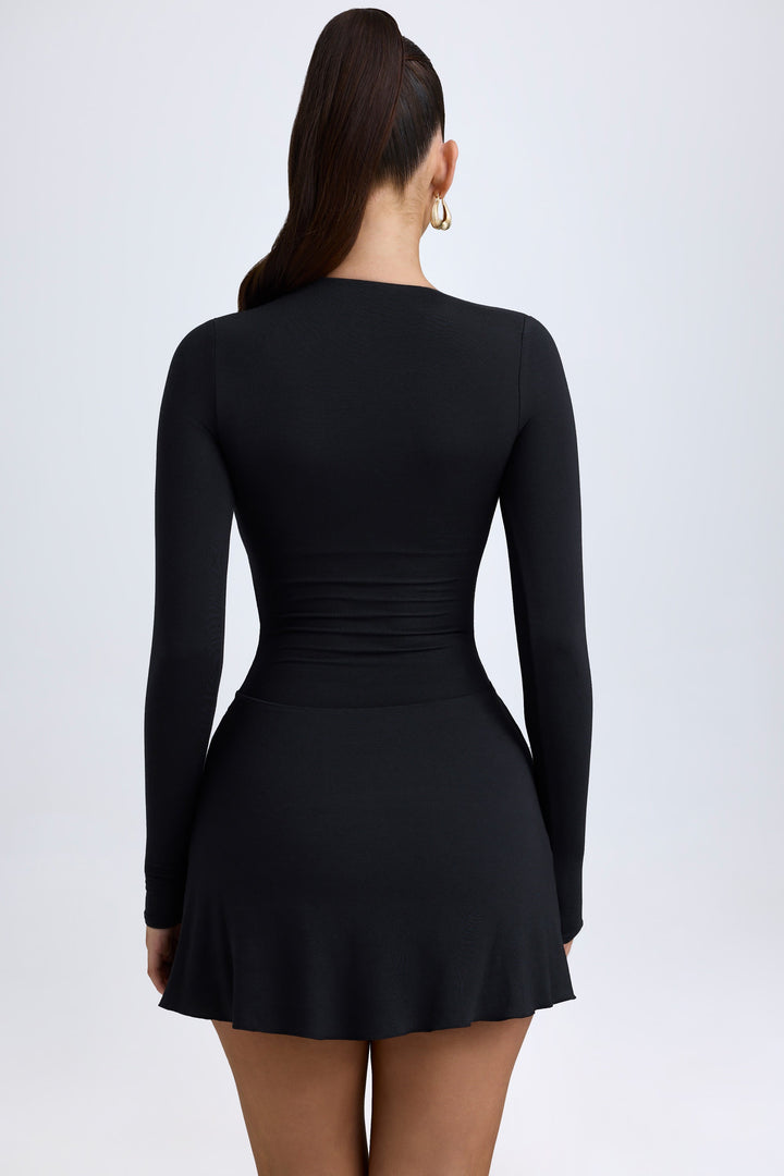 Siyah Modal Asimetrik A Kesim Mini Elbise