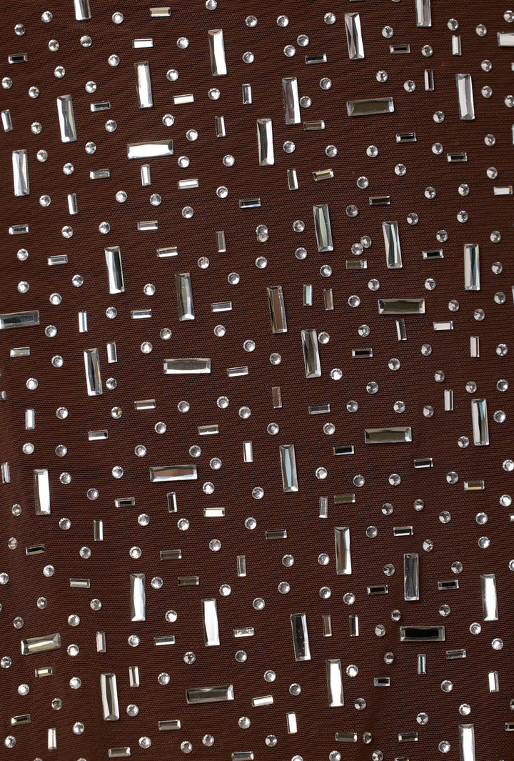 Derin Kakaolu Transparan Yuvarlak Yaka Mini Elbise
