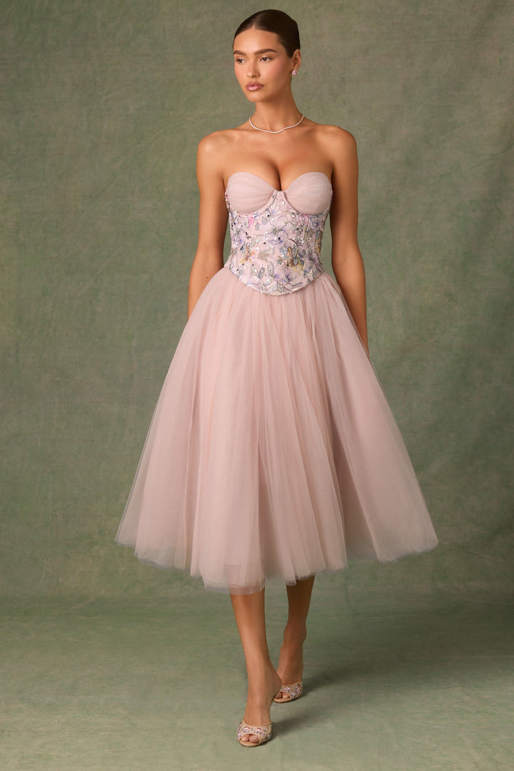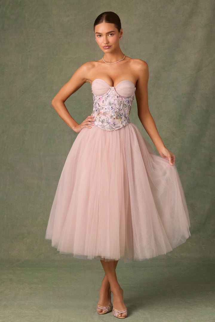 Çiçek Pembesi İşlemeli Bağcıklı Cupless Korse