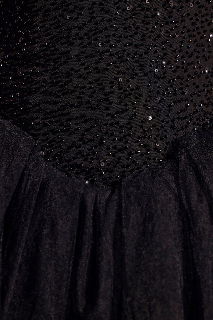 İşlemeli Korse Tül Etek Siyah Mini Elbise