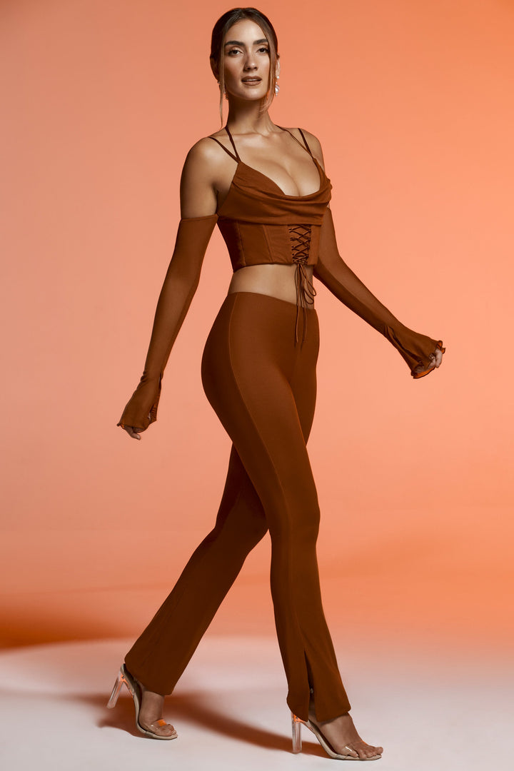 Kahverengi Yırtık Flare Pantolon