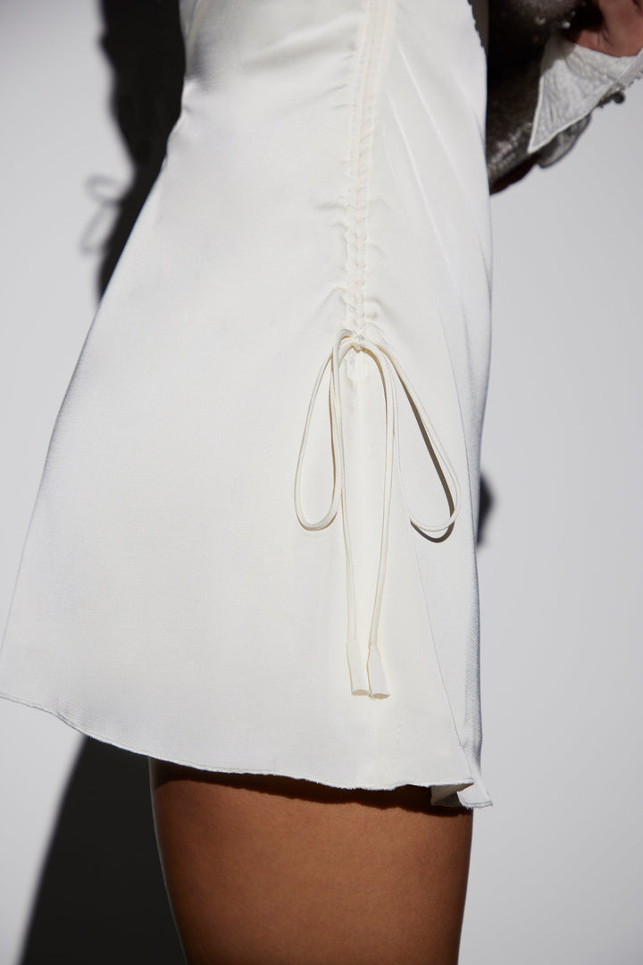 Beyaz Uzun Kollu Taşlı A Kesim Mini Elbise