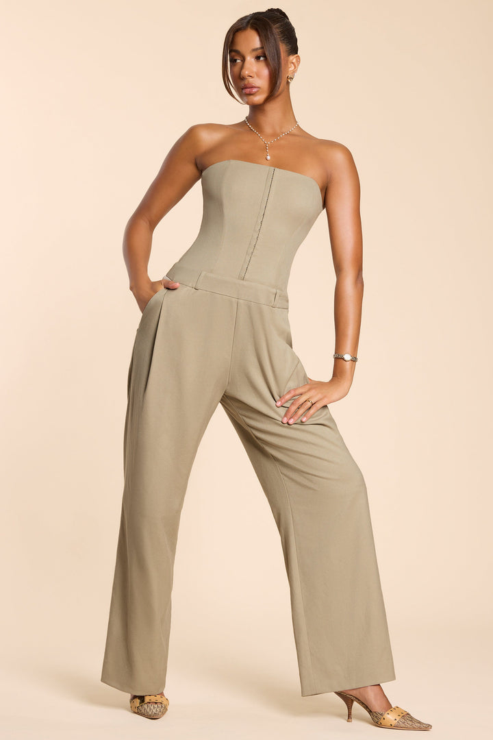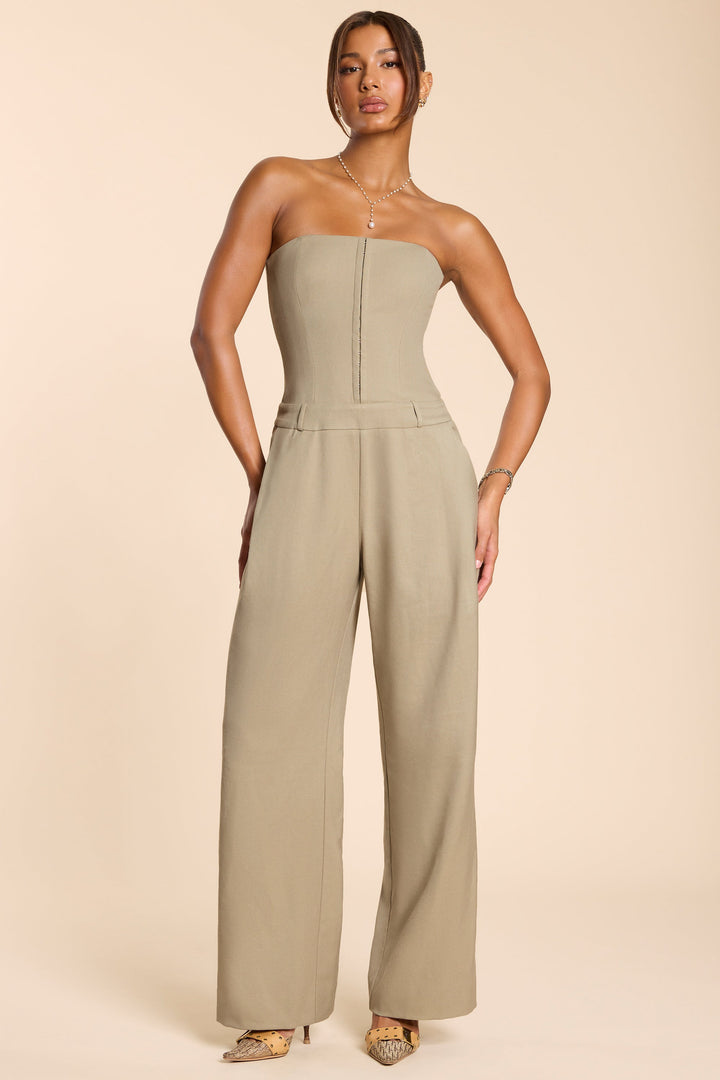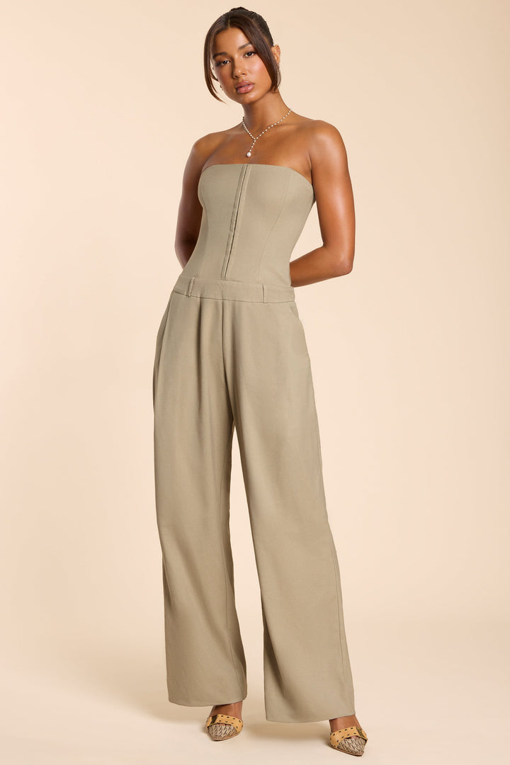 Taupe Petite Brushed Twill Bandeau Korse Tulum