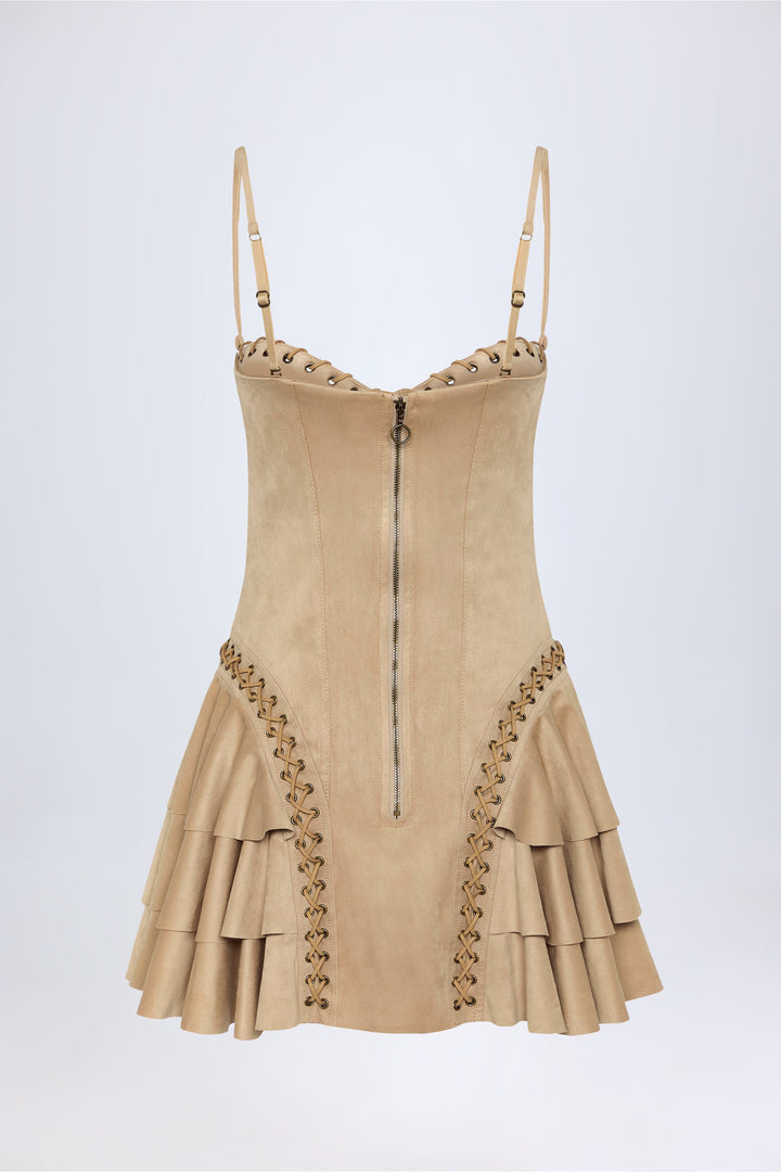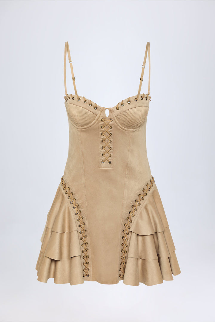 Taba Bağcıklı Kat Kat Korse Mini Elbise