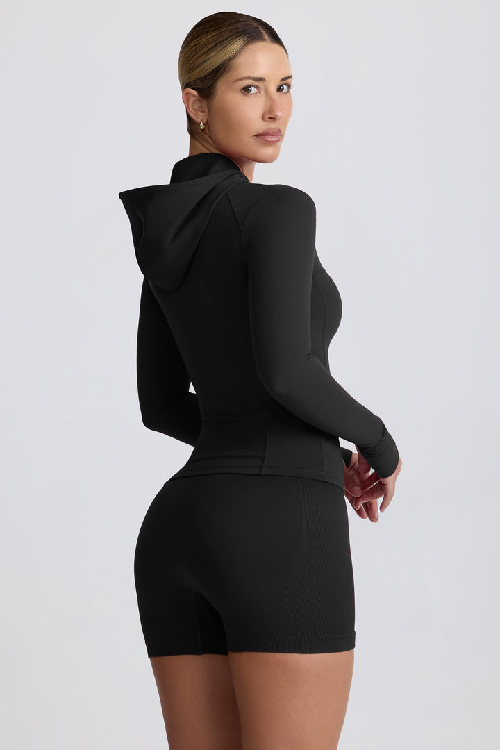 Siyah Yumuşak Aktif Kapüşonlu Orta Kat Ceket