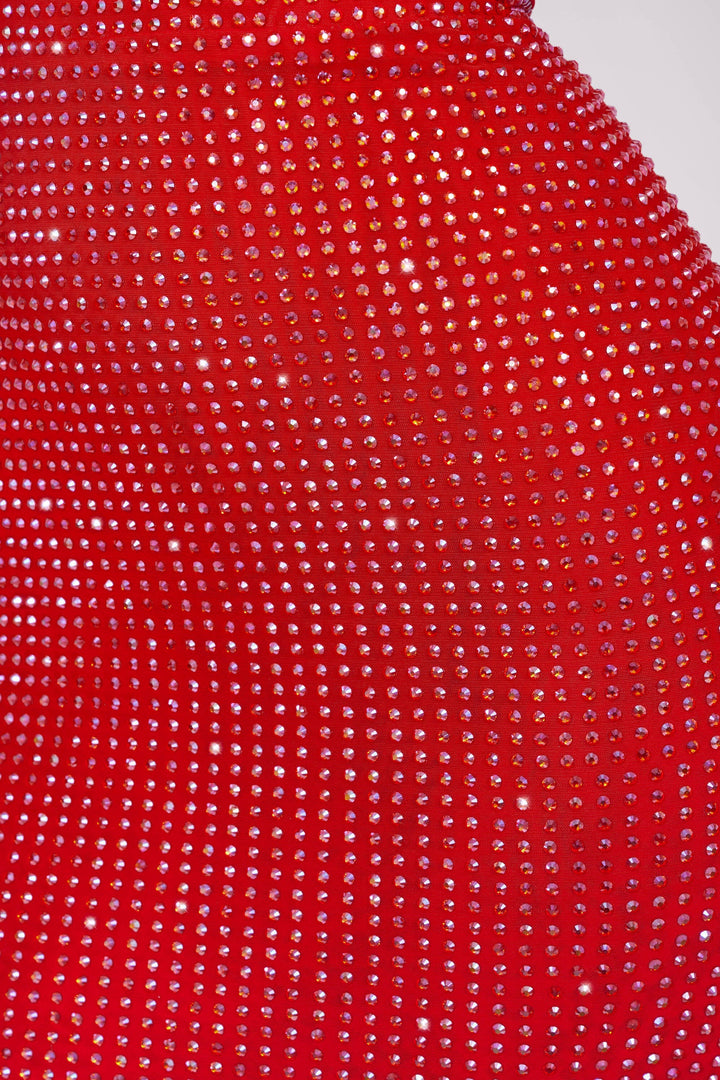 Ateş Kırmızısı İşlemeli Korse Balık Kuyruğu Abiye Elbise