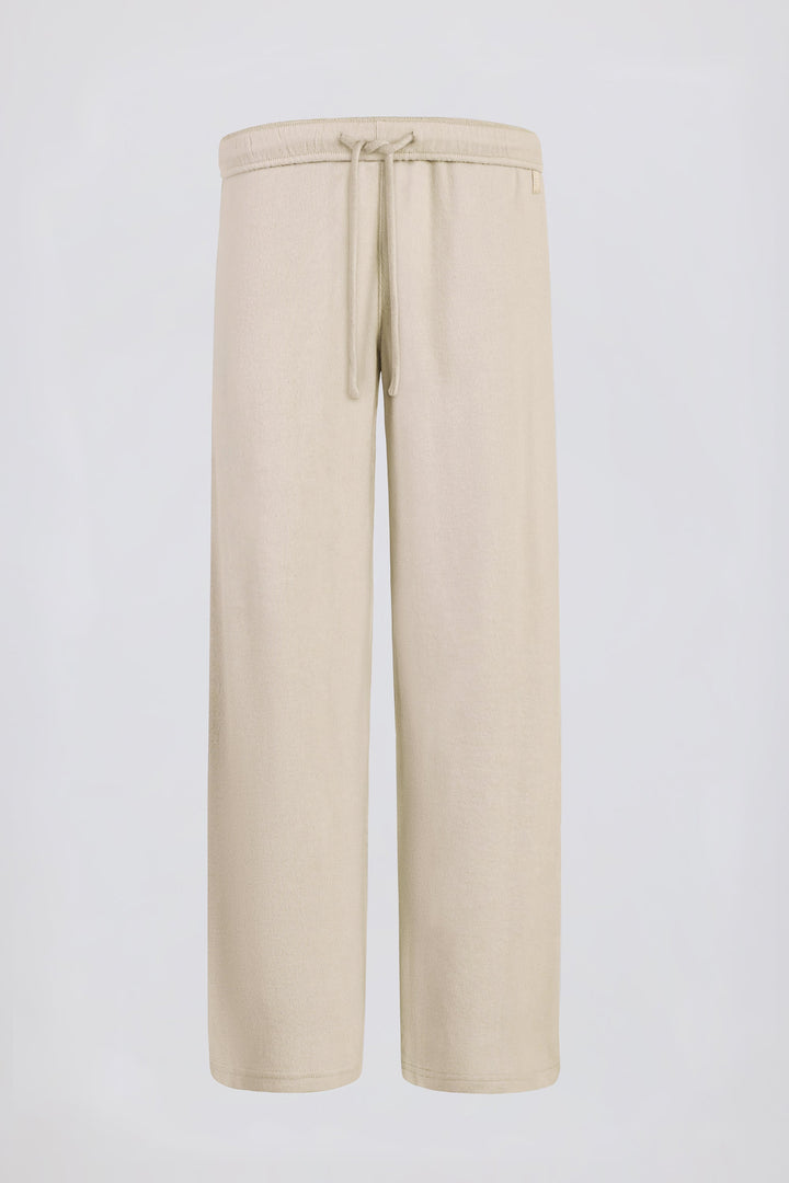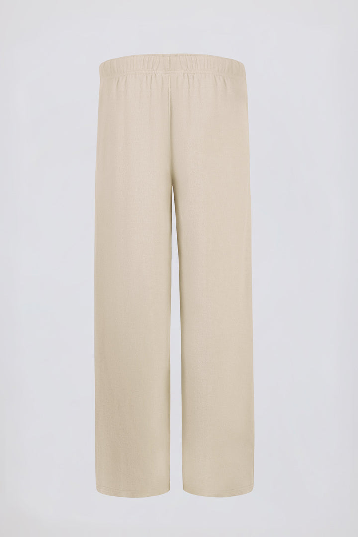 Ekru Fırçalanmış Jersey Geniş Paça Jogger Pantolon