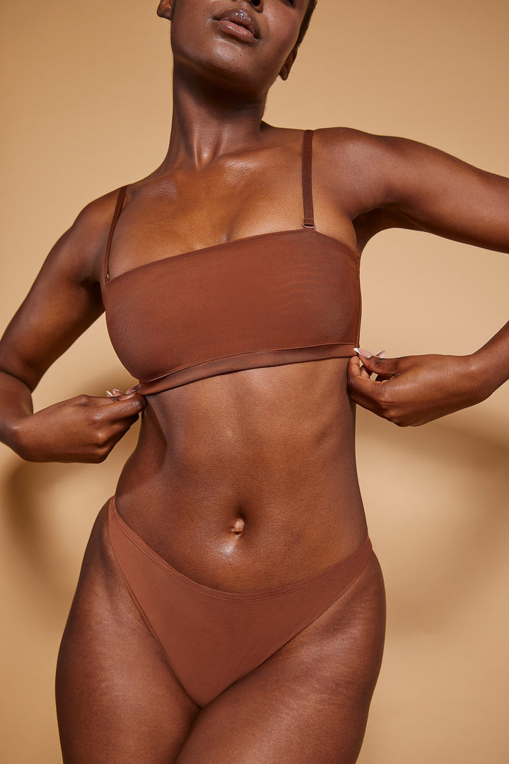 Kestane Yumuşak File Bandeau Sütyen