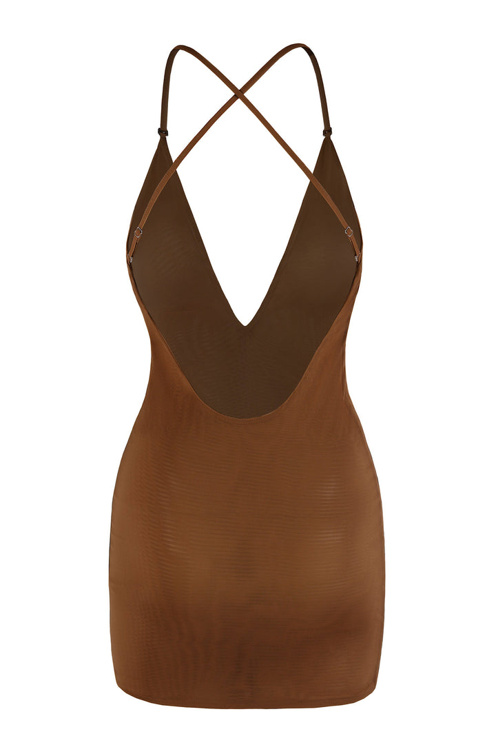 Intimates Yumuşak Fileli Çok Yönlü Kestane Mini Elbise
