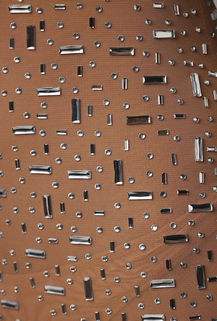 Badem Transparan Uzun Kollu Abiye Elbise