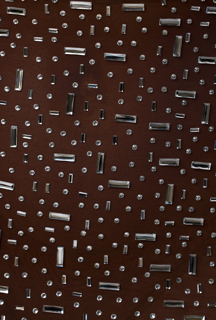 Derin Kakaolu Transparan Uzun Kollu Gece Elbisesi