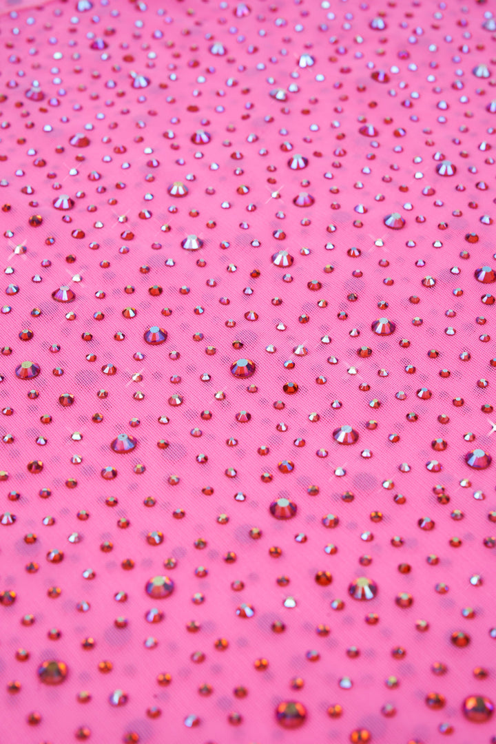 Sakız Pembesi Taşlı Bağcıklı Düşük Omuz Mini Elbise