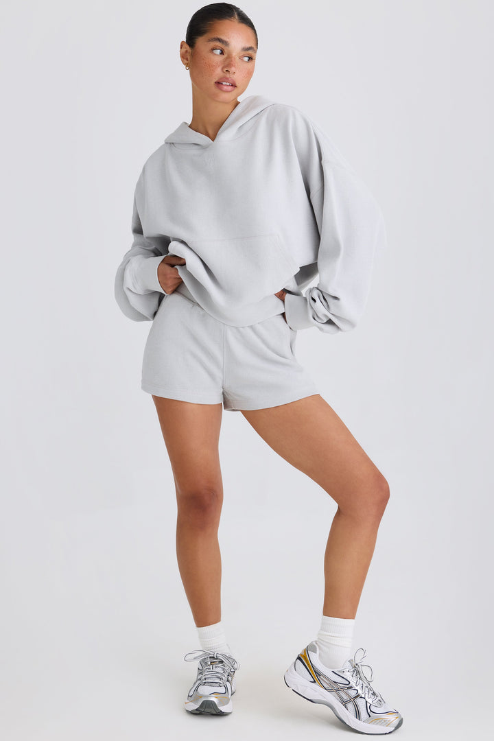 Pasifik Gri Grafik Baskılı Kapüşonlu Üst
