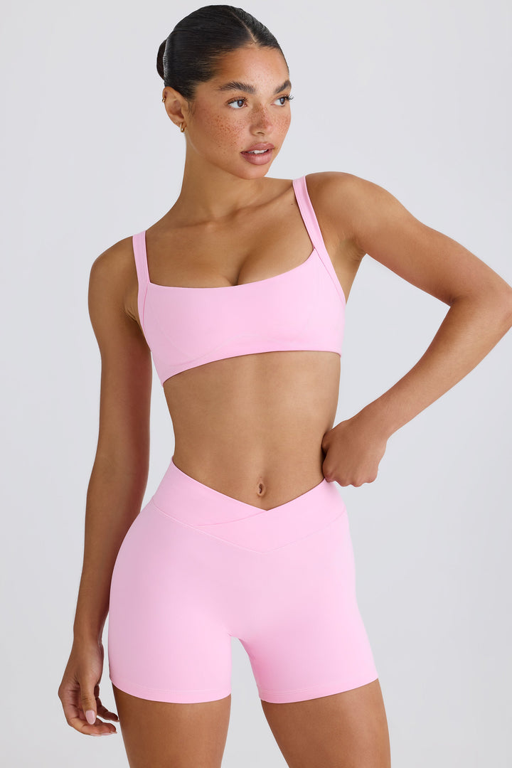 Sakız Pembesi Yumuşak Aktif Kontrastlı Spor Sütyeni