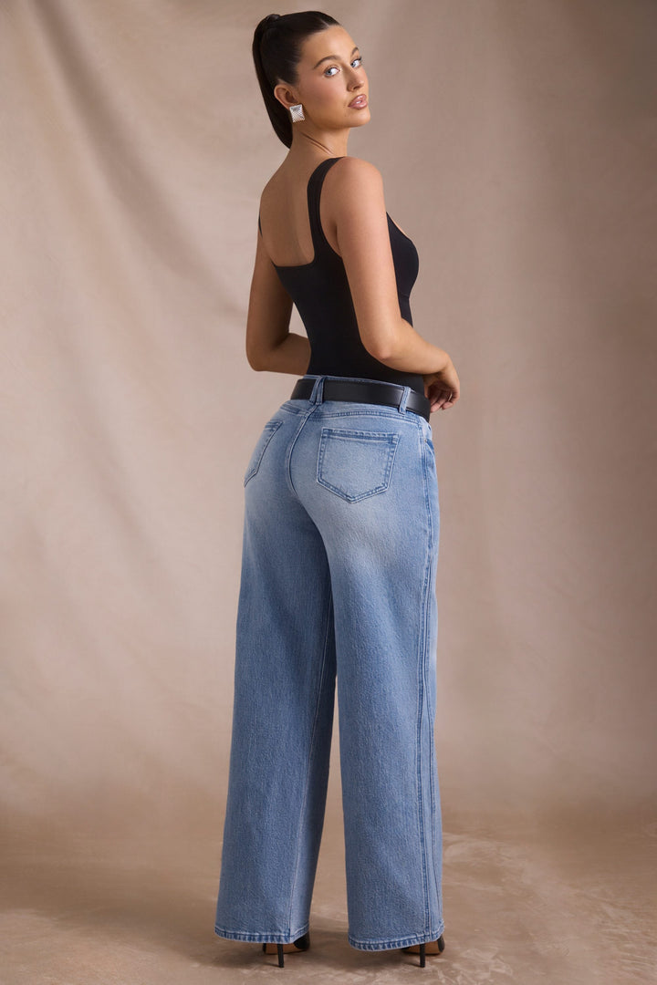Vintage Yıkamalı Düşük Belli Geniş Paça Jean