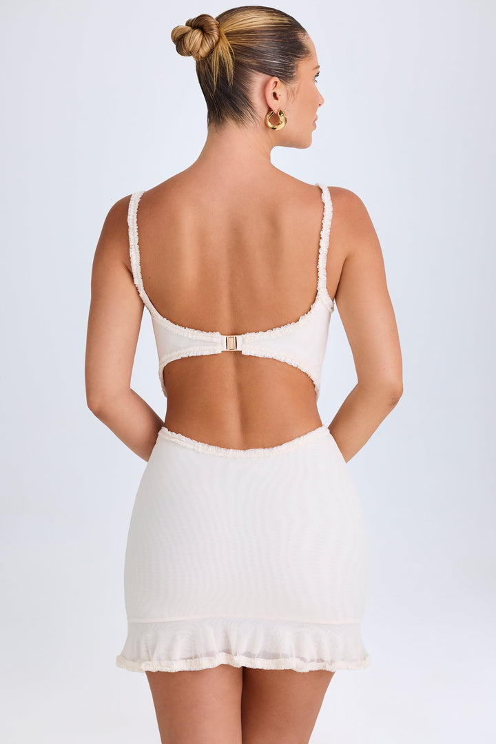 Beyaz Fırfır Aplikeli Kesik Mini Elbise