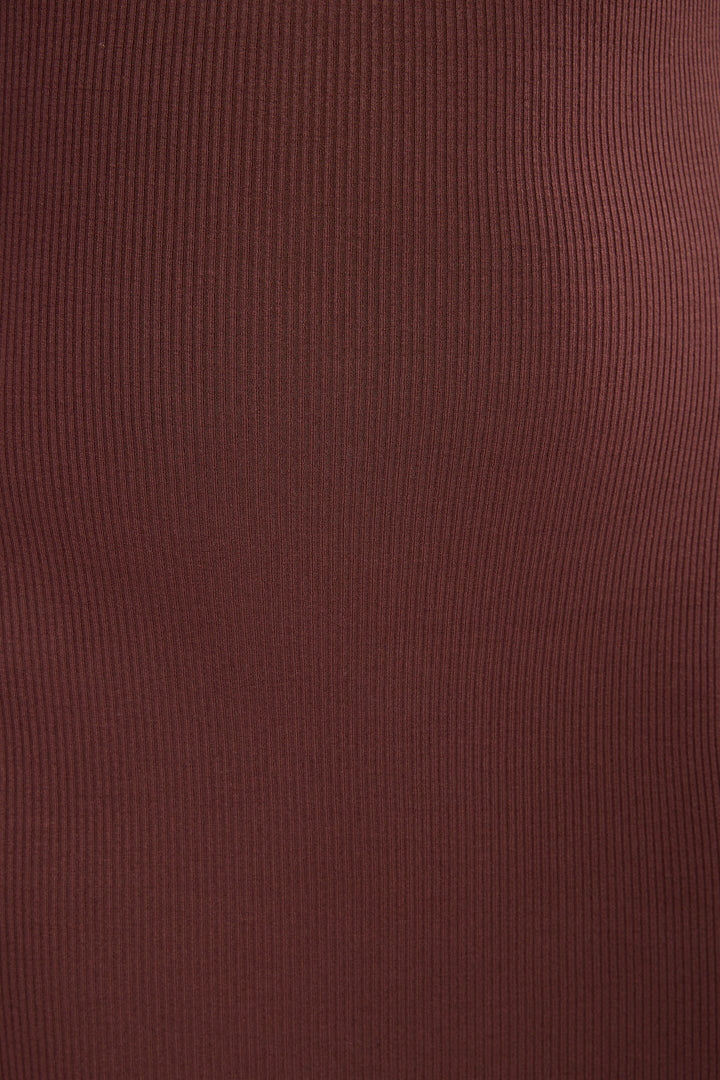 Çikolata Rengi Nervürlü Modal Uzun Kol Maxi Elbise