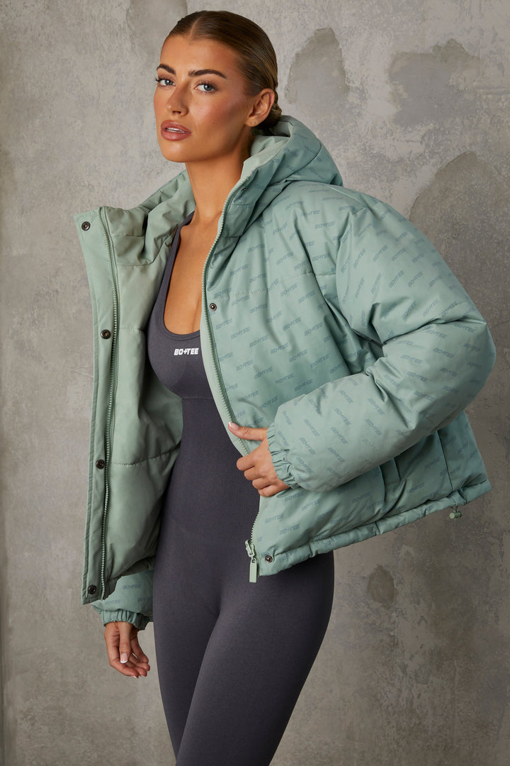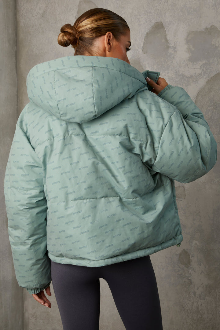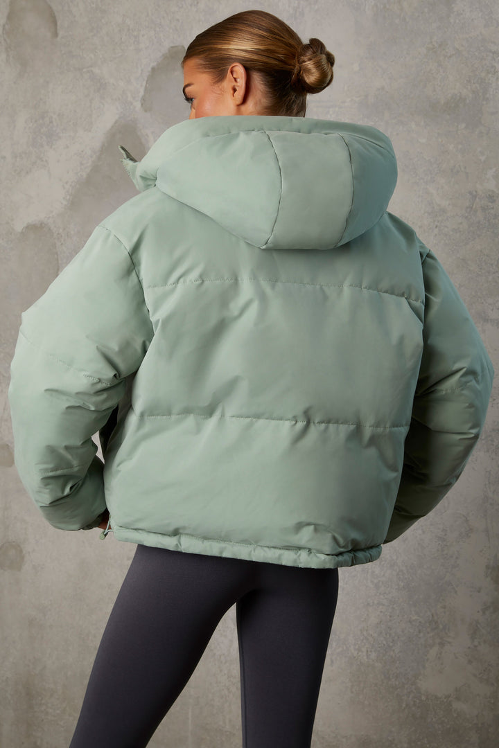 Buzdağı Yeşili Çift Taraflı Kapüşonlu Şişme Ceket