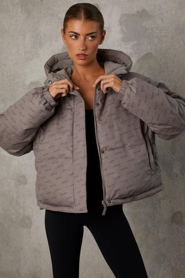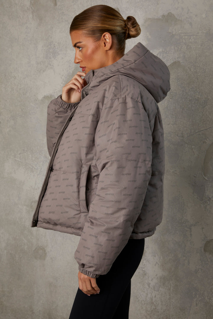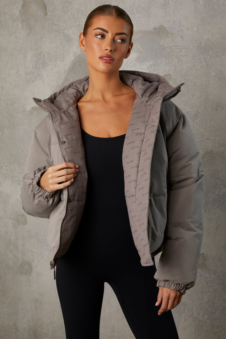 Sıcak Gri Çift Taraflı Kapüşonlu Şişme Ceket