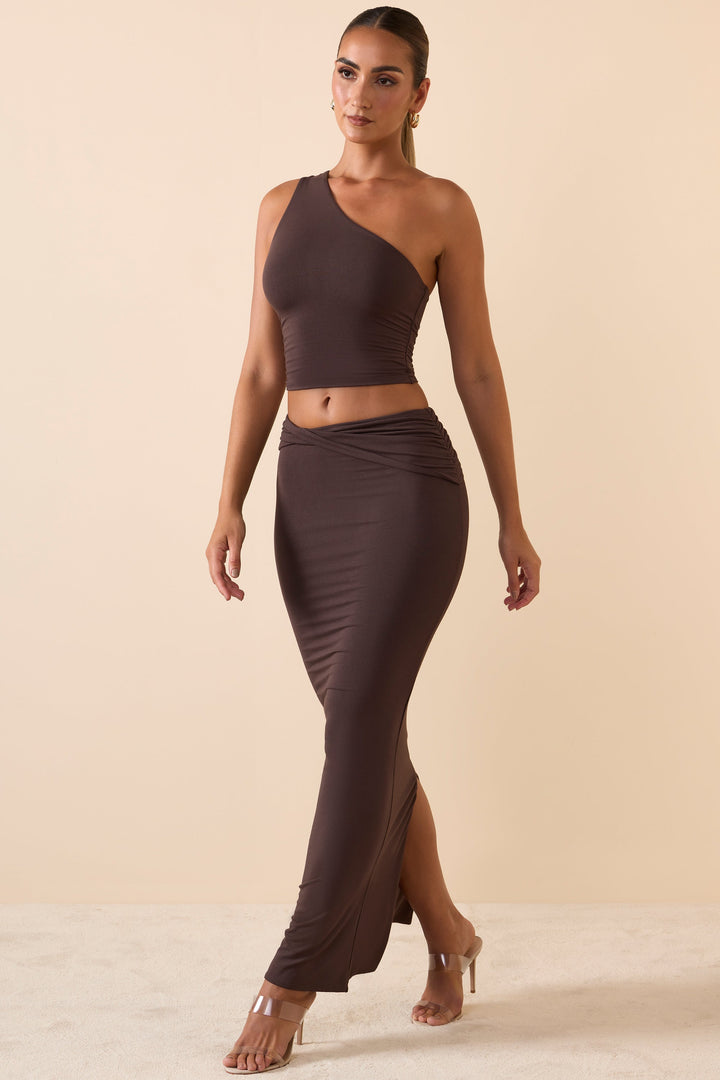 Çikolata Kahvesi Modal Twist-Ön Maxi Etek