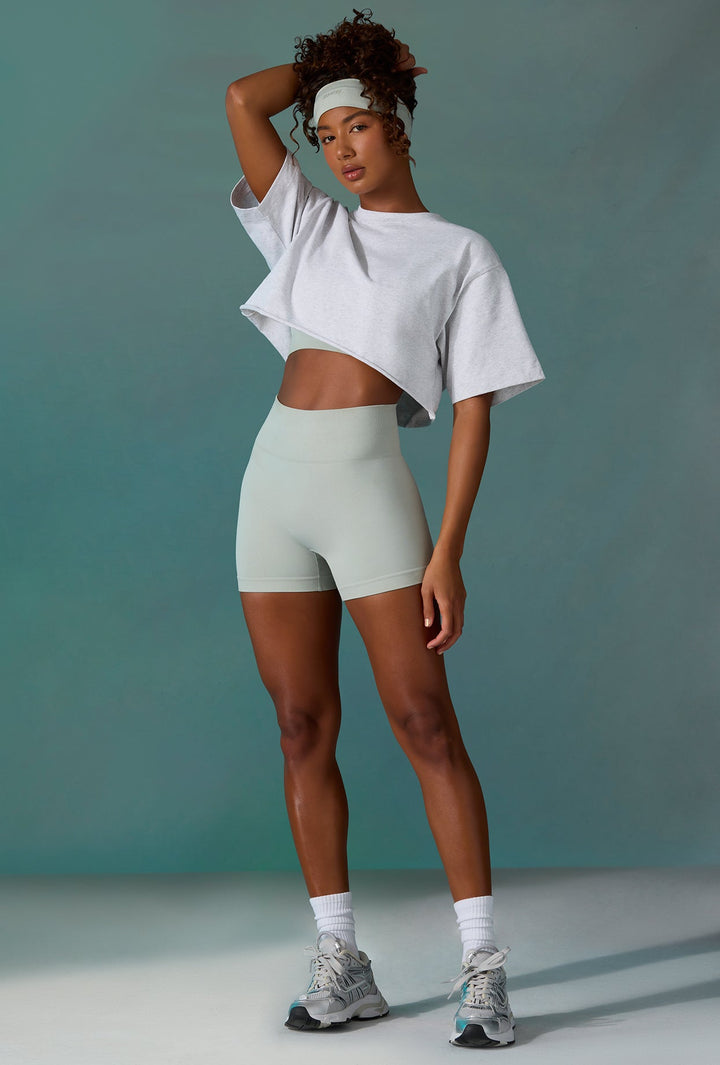 Buz Grisi Pamuklu Kısa Oversize T-Shirt